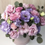 Букет из 15 розовых и сиреневых эустом в коробке в Кингисеппе