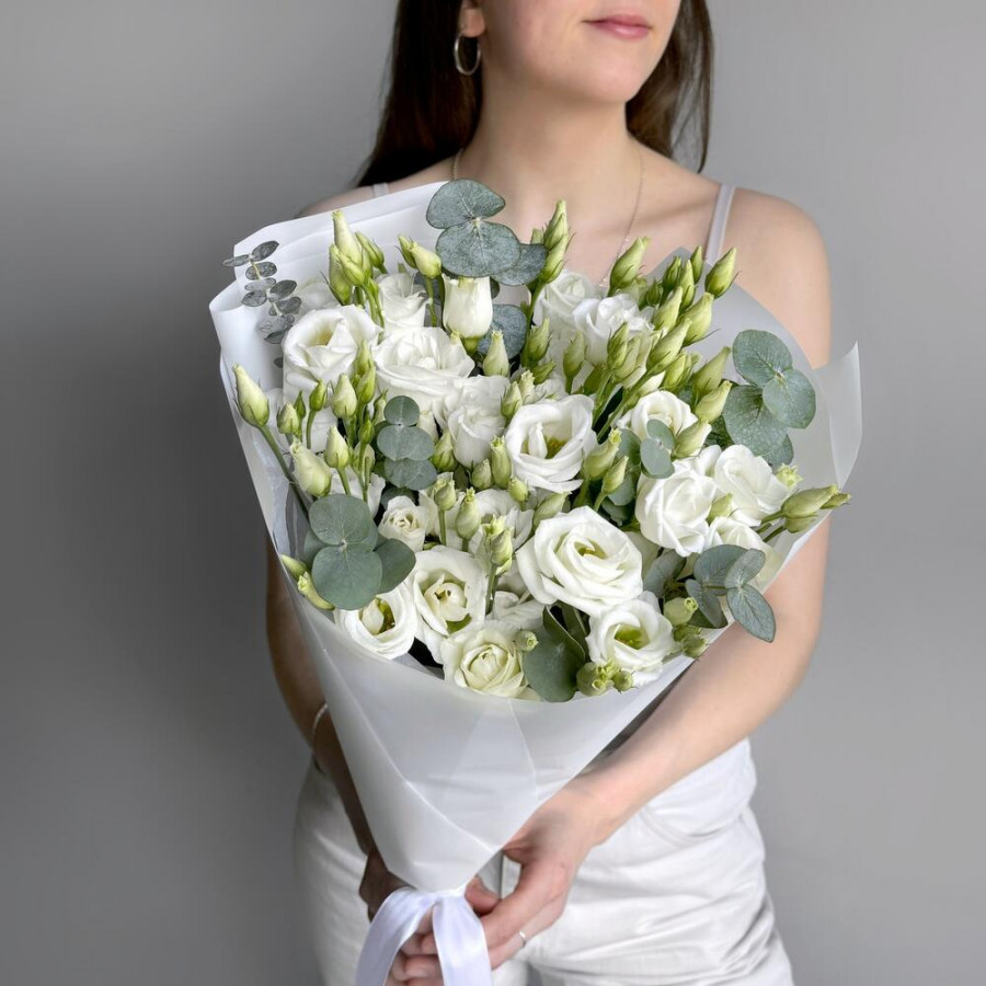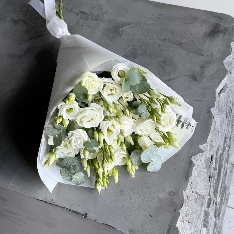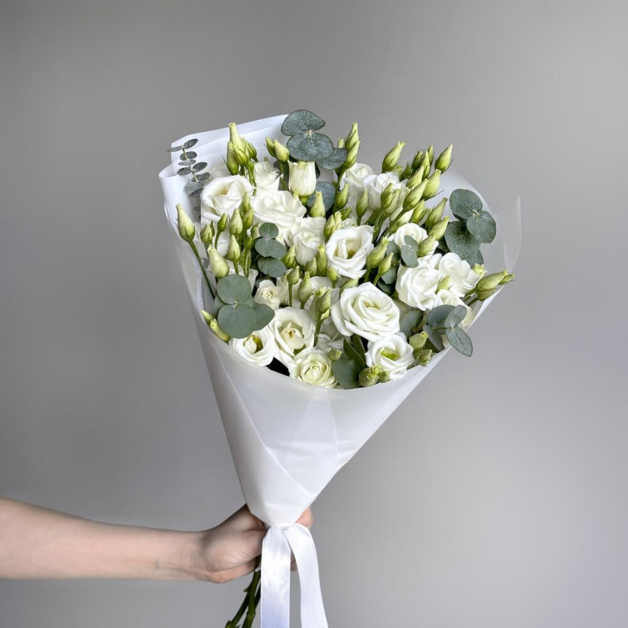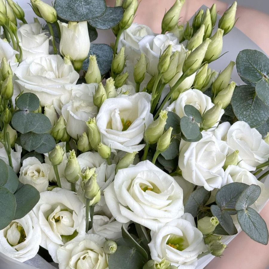 Букет из 7 белых эустом и эвкалипта в Кингисеппе