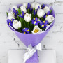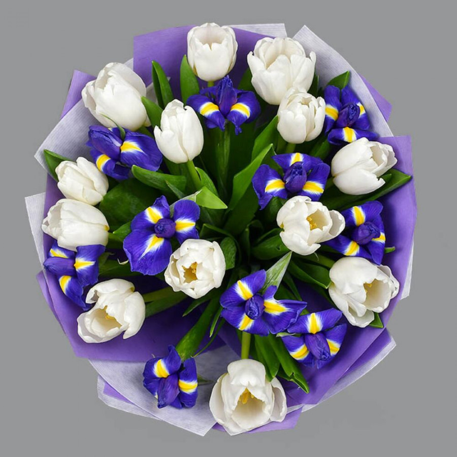 Букет из синих ирисов и белых тюльпанов в Кингисеппе