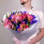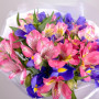 Букет из синих ирисов из розовых альстромерий в Кингисеппе