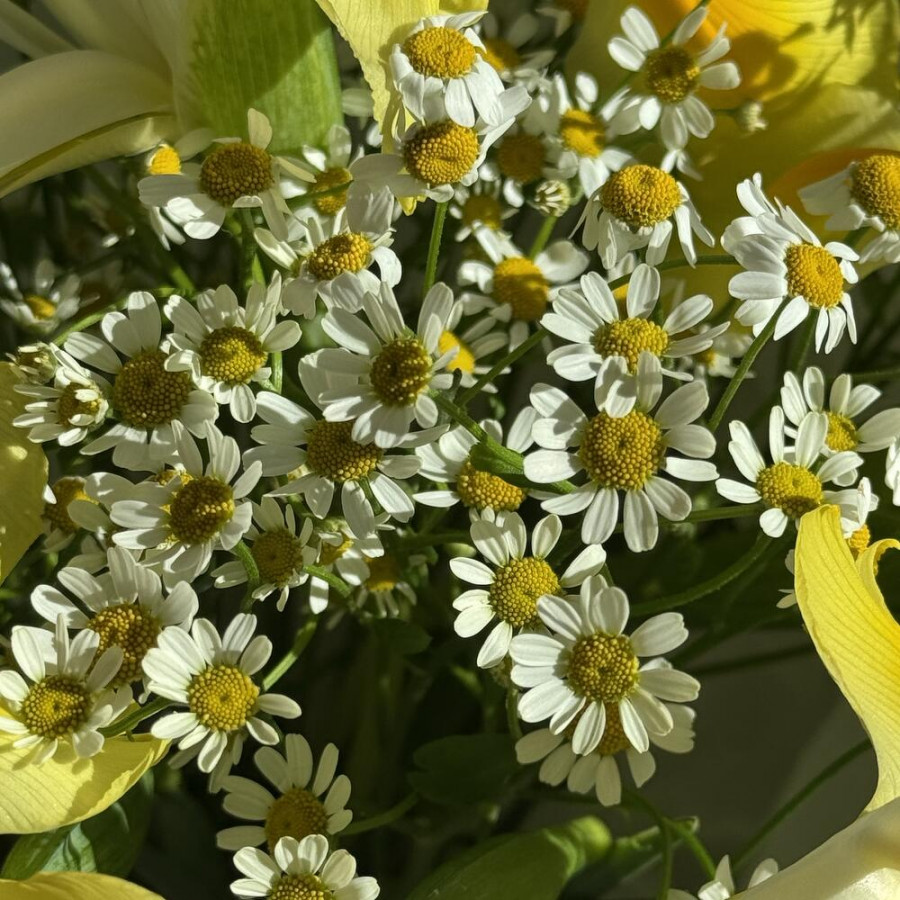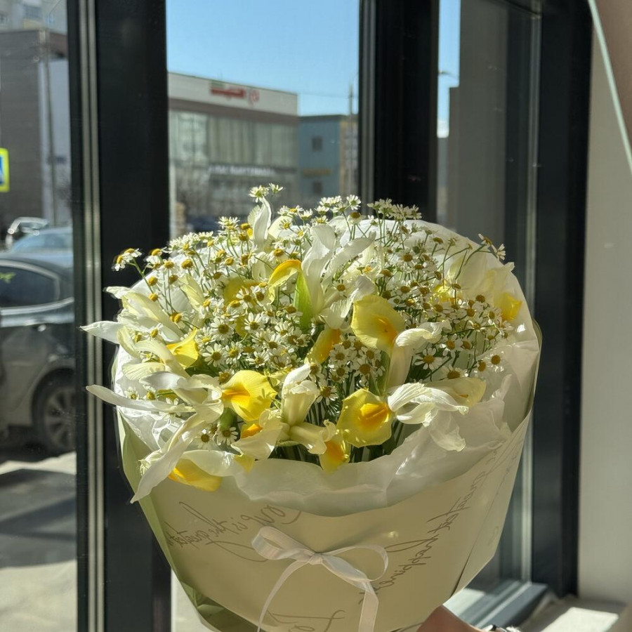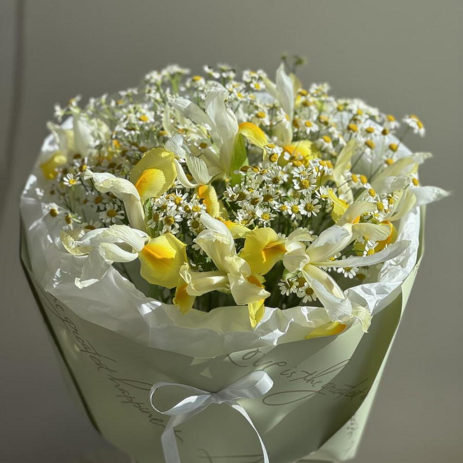Букет из желтых ирисов и ромашек в Кингисеппе